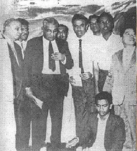 S.M. Jabir (far left) with Hon. Prime Minister Dudley Senanayake (the second prime minister of Sri Lanka), at the Gem Exhibition held at The Galle Face Hotel in June 1967.